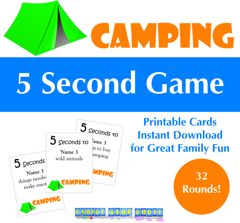 Get ready for an epic camping game! Can you name three things in a camper in 5 seconds? How about three ways to start a fire? In our Camping 5 Seconds game you and your family only have 5 seconds to answer these questions and more.