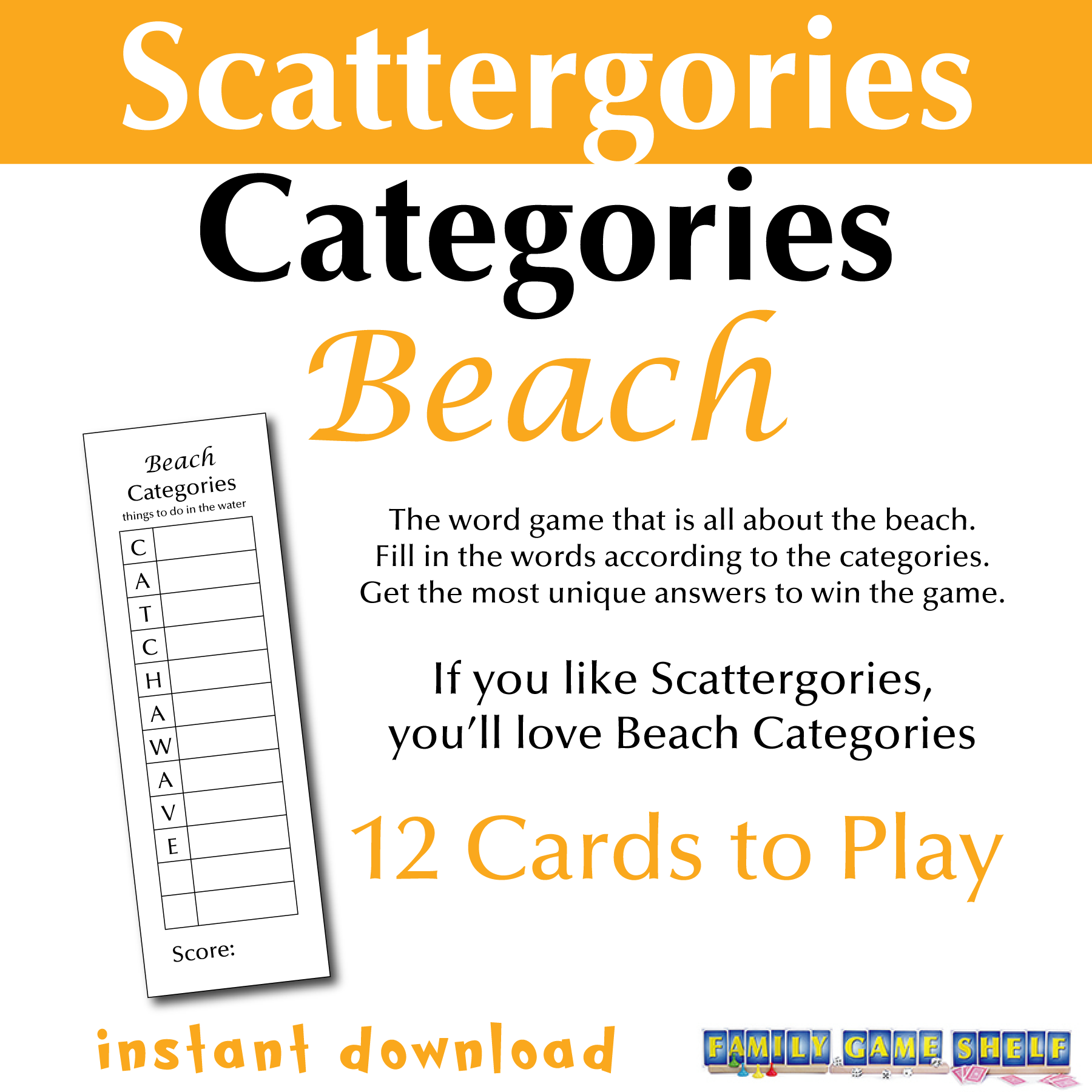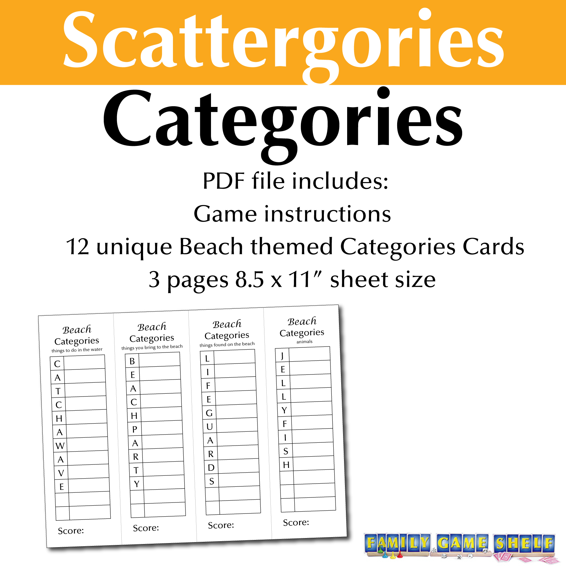 If you love Sattergoires, then this Scattergories Categories game is for you.