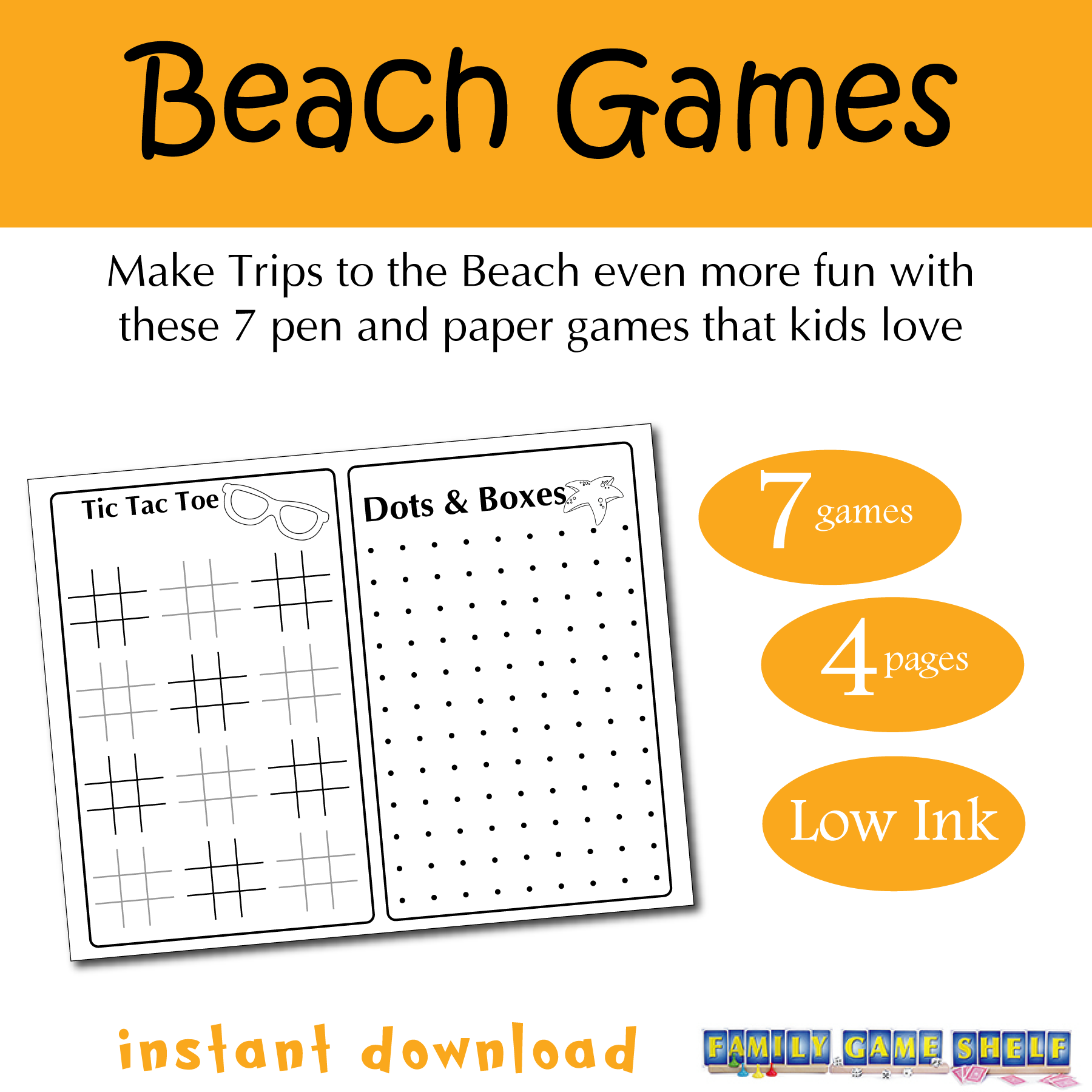 All games have a fun beach theme to them and print with little ink so it’s budget friendly and better for the environment. Great for a beach party, summer party or famiy game night.