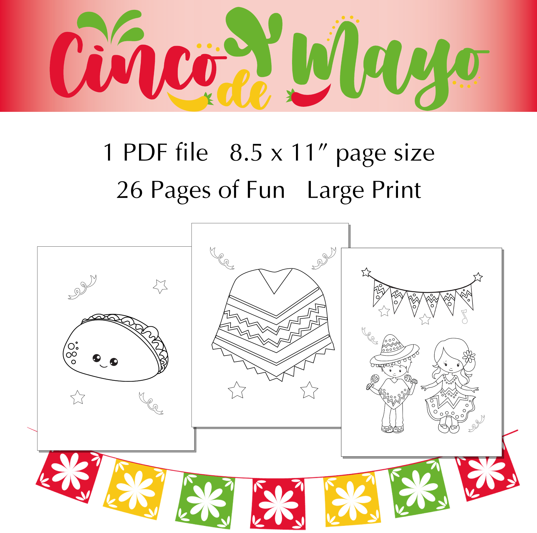 Celebrate Cinco De Mayo with these fun, large print Mexican themed colouring pages.