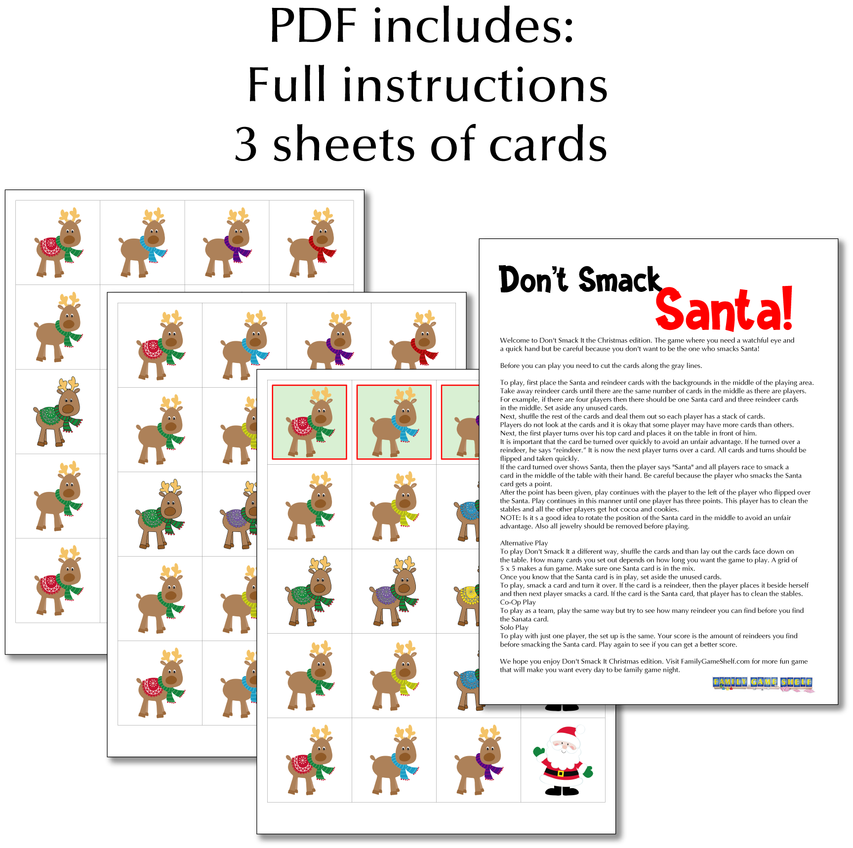Get ready for some side-splitting fun with this fun Christmas Game. Don’t Smack Santa is the card game where players have to pay attention and not be the one to smack Santa – or you might be the one to have to clean the reindeer stables.