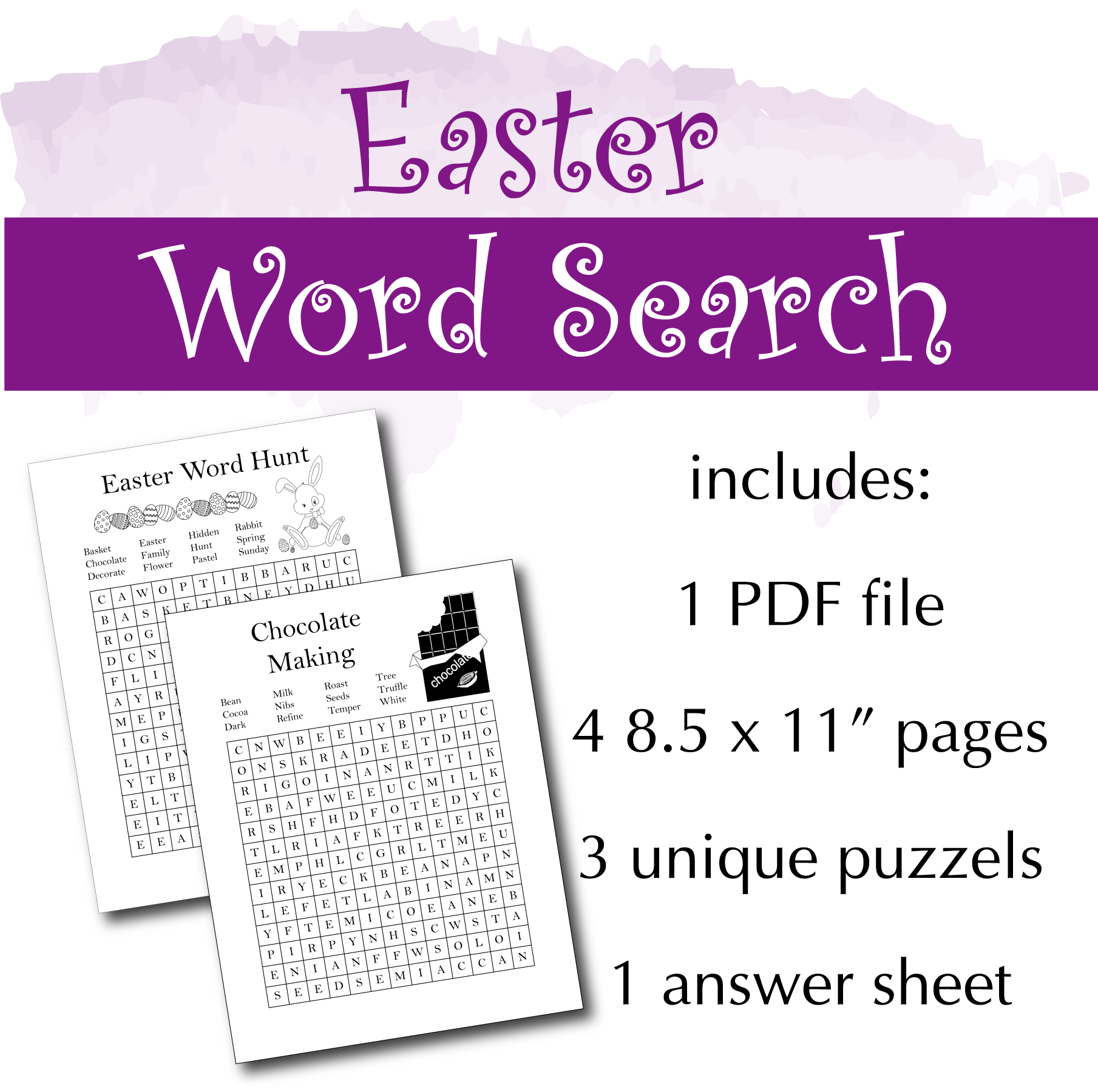 These are three new word search puzzles for your Easter fun. Each puzzle prints on it’s own page.