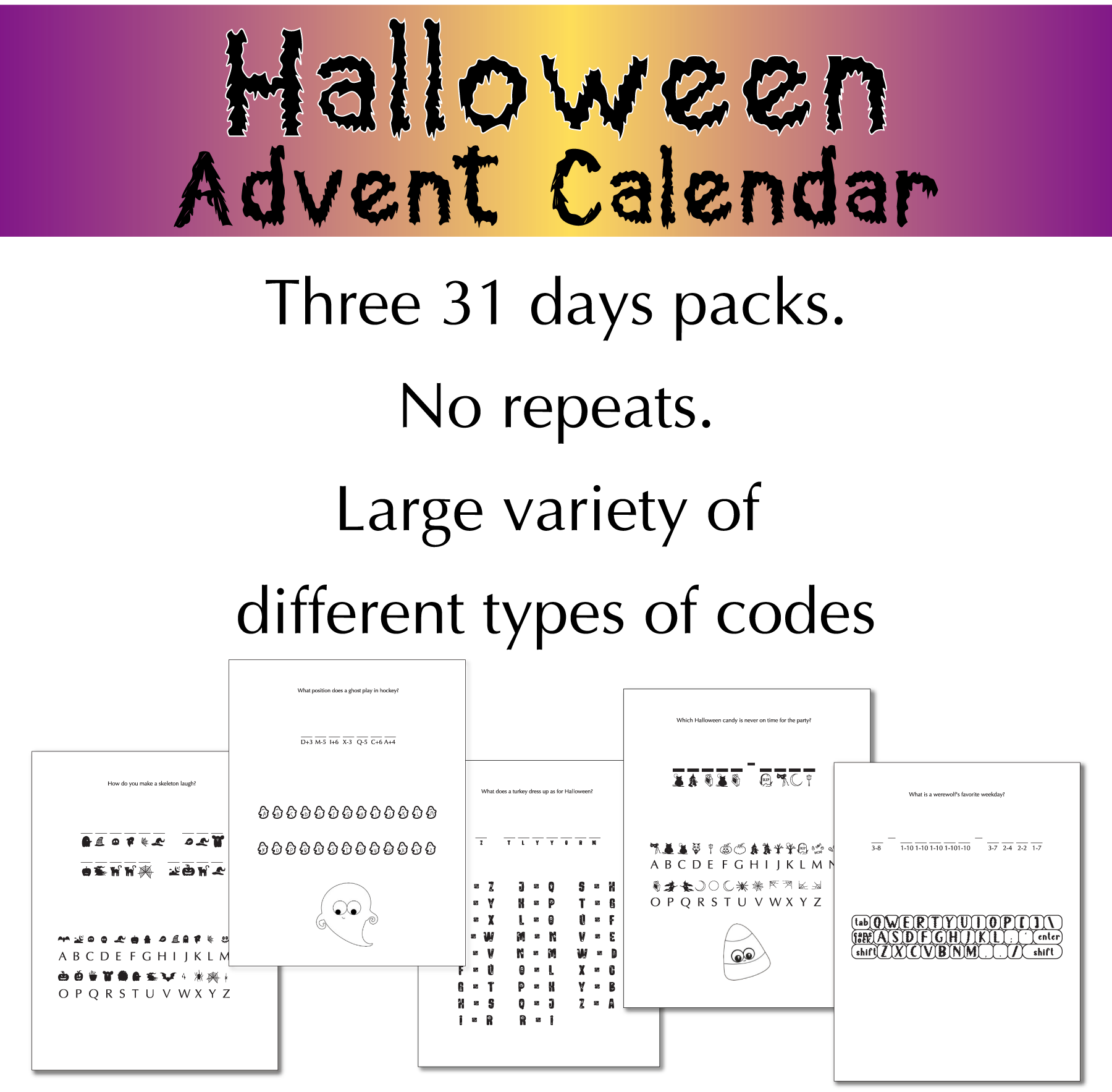 — 3 packs of 31 Halloween themed jokes