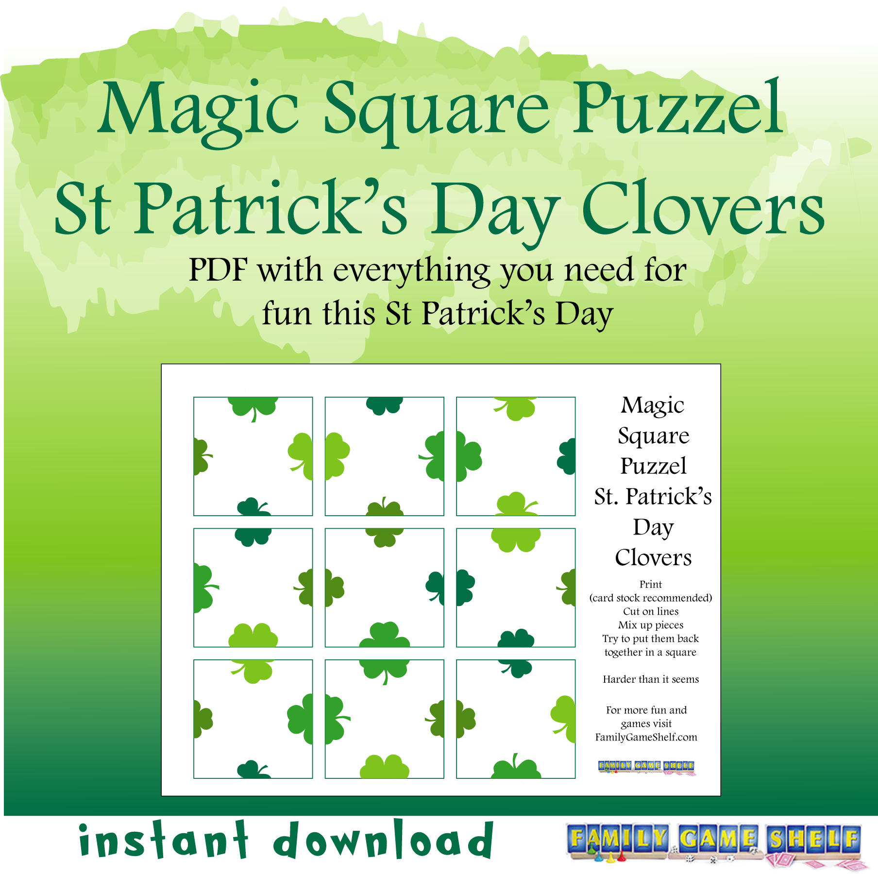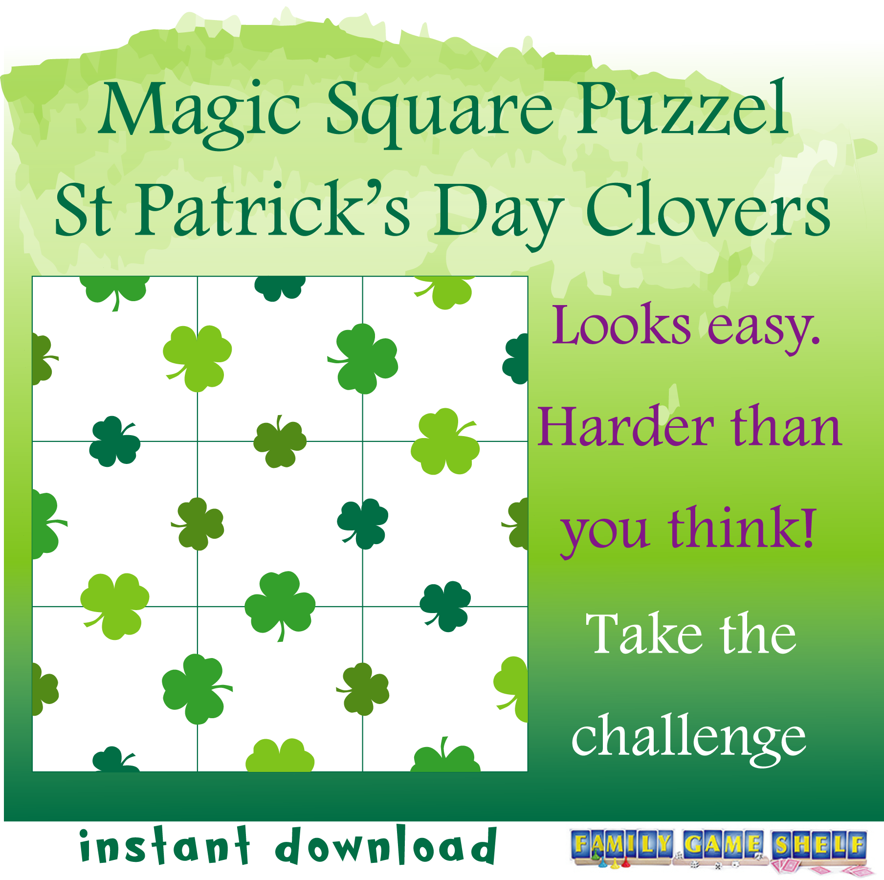 Magic Square Puzzle St Patrick’s Day Clovers