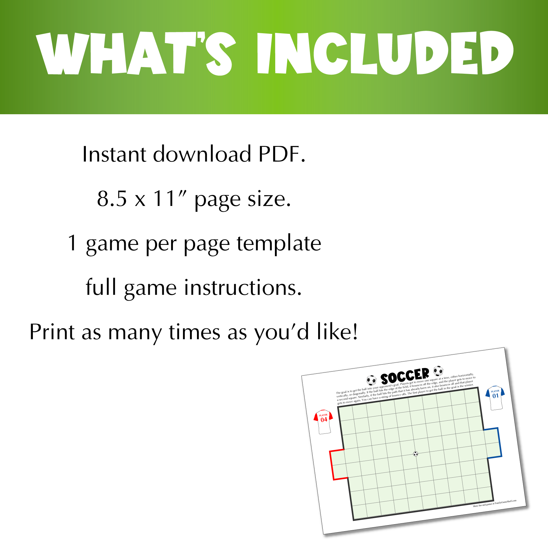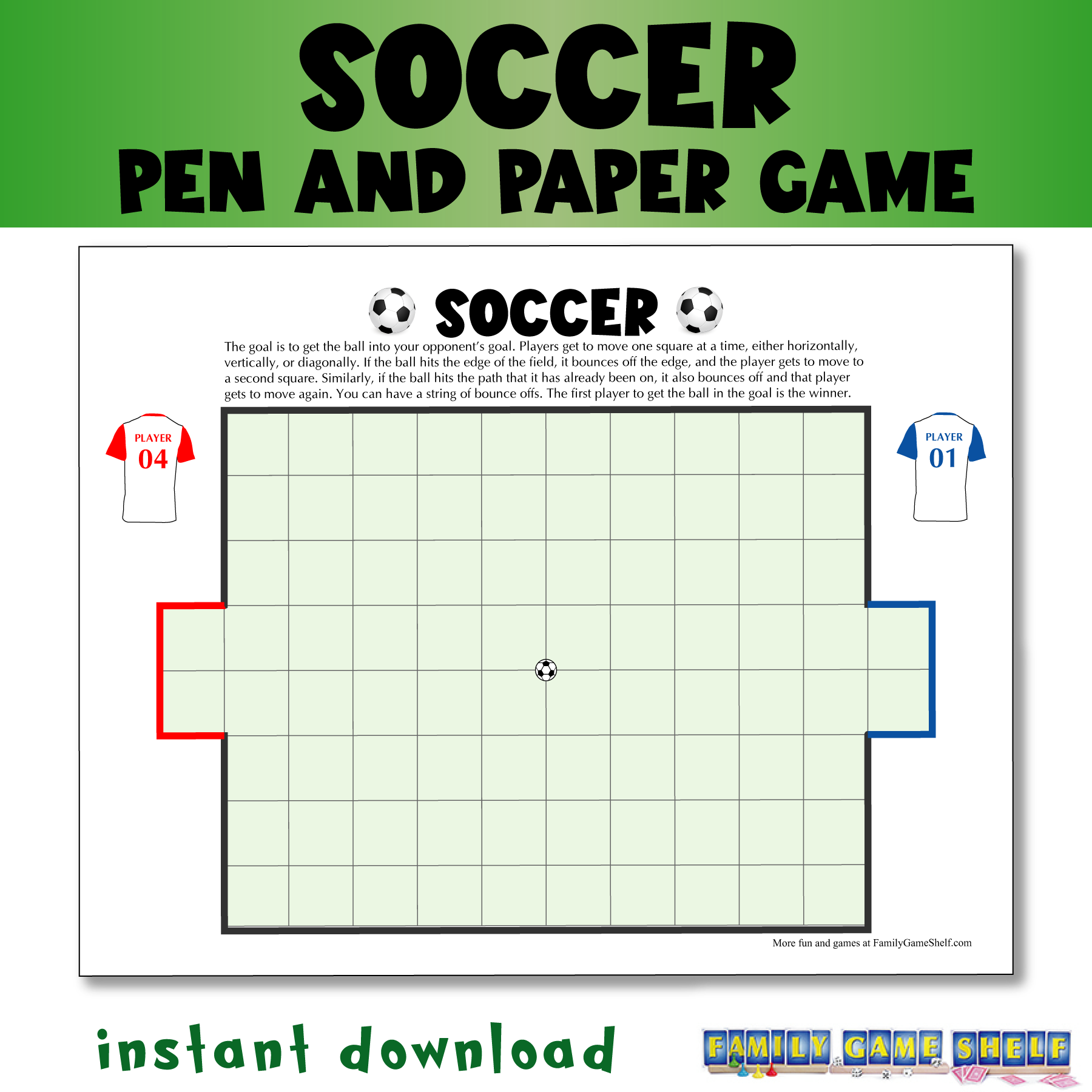Bring all the fun of a soccer game to your fingertips! This easy to play pen and paper game holds hours of fun as you go head to head in a challenging, strategy match.