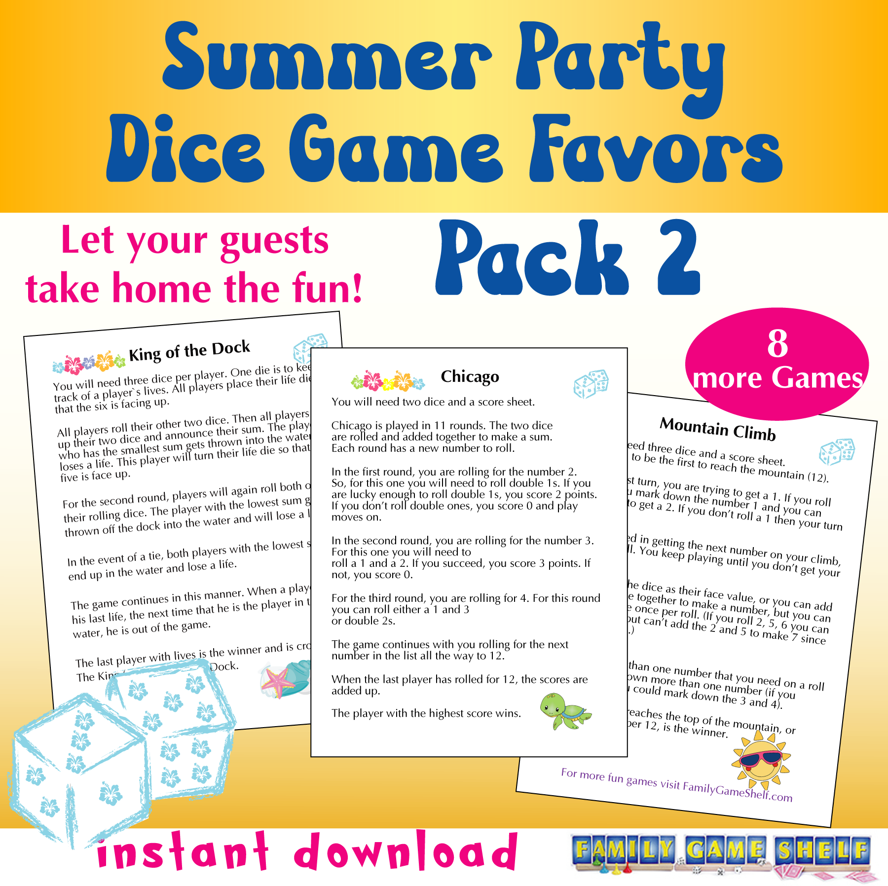 Make this summer full of fun with these easy dice games. A party favor that they will use for years!
