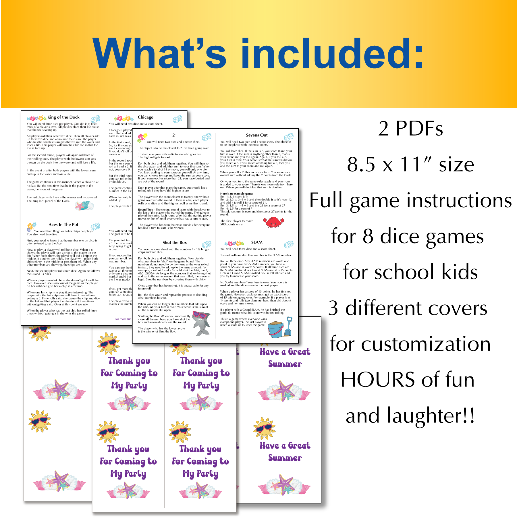 Be the first to review “Summer Party Favors Dice Games Printable gift for students, Pack 2”