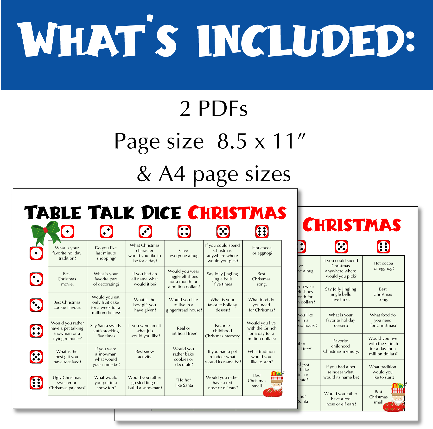 Open the door to meaningful conversation while having fun with this Christmas themed Table Talk Dice game!