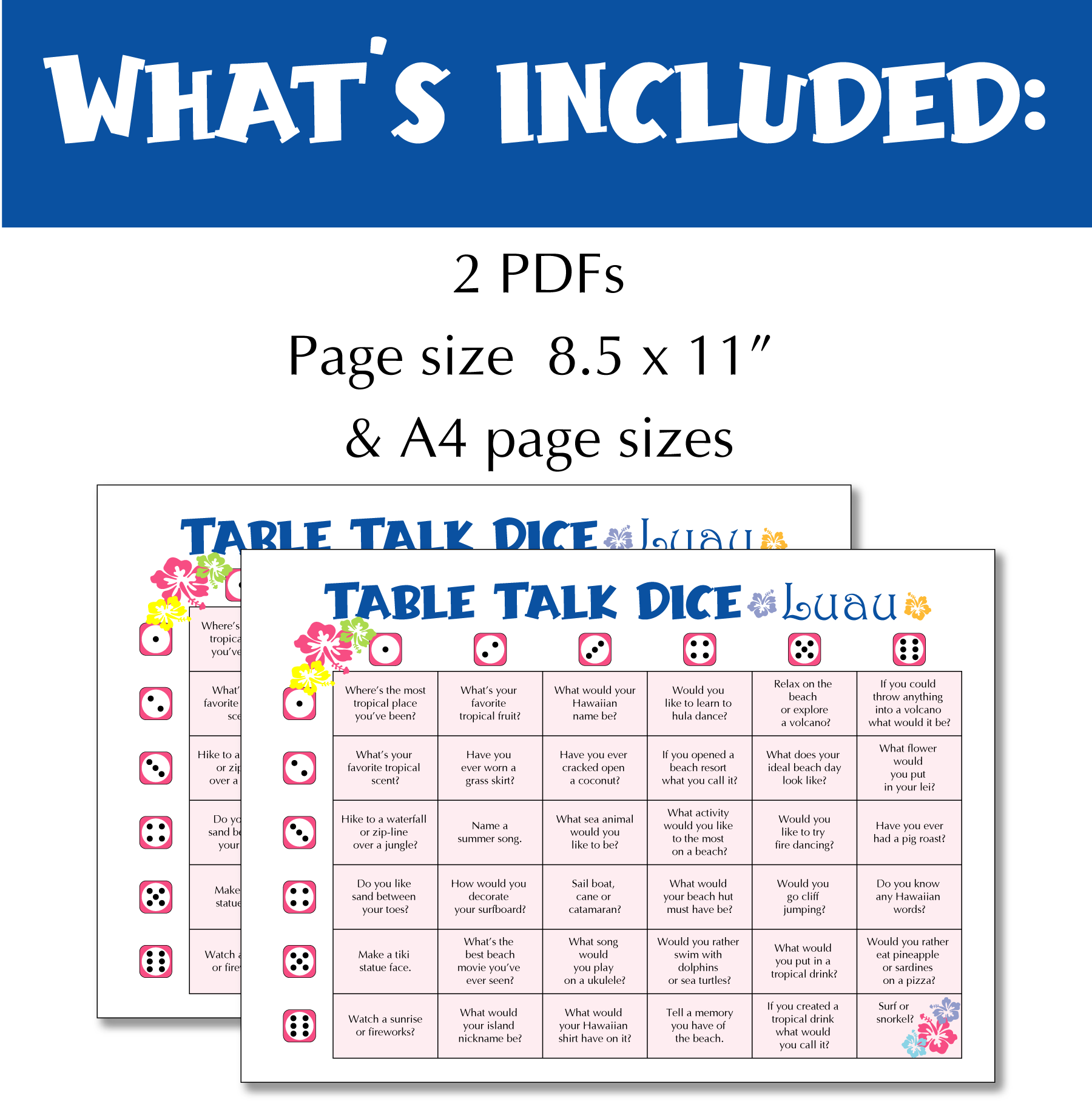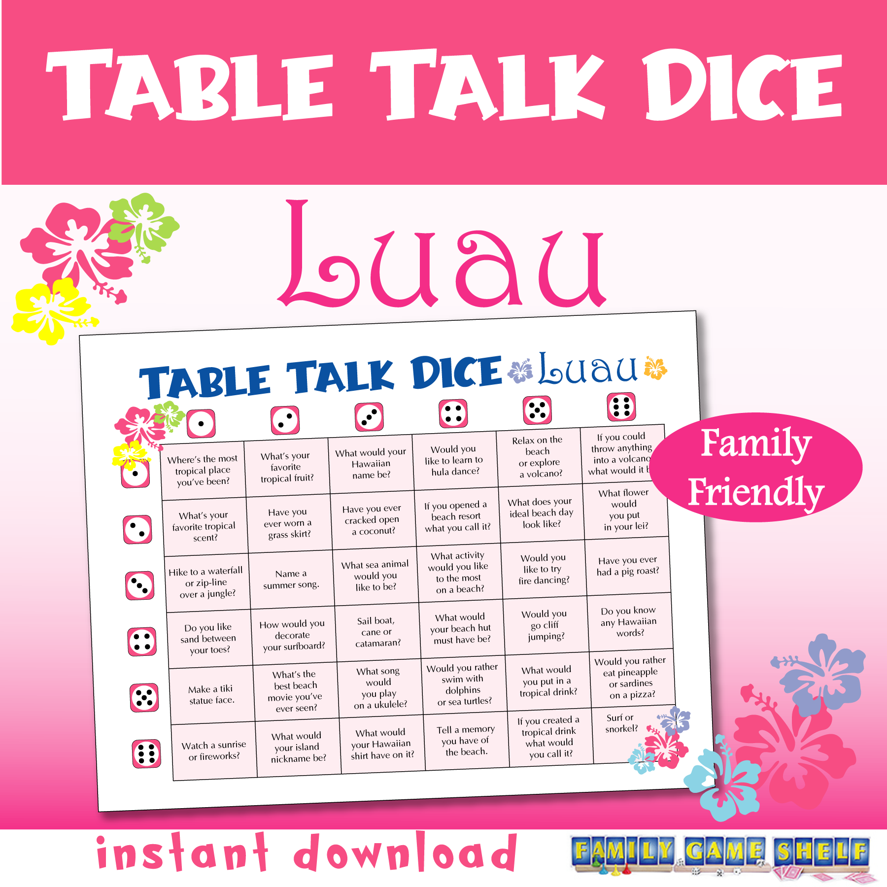 Make your luau one to remember with this Luau themed Table Talk Dice game!