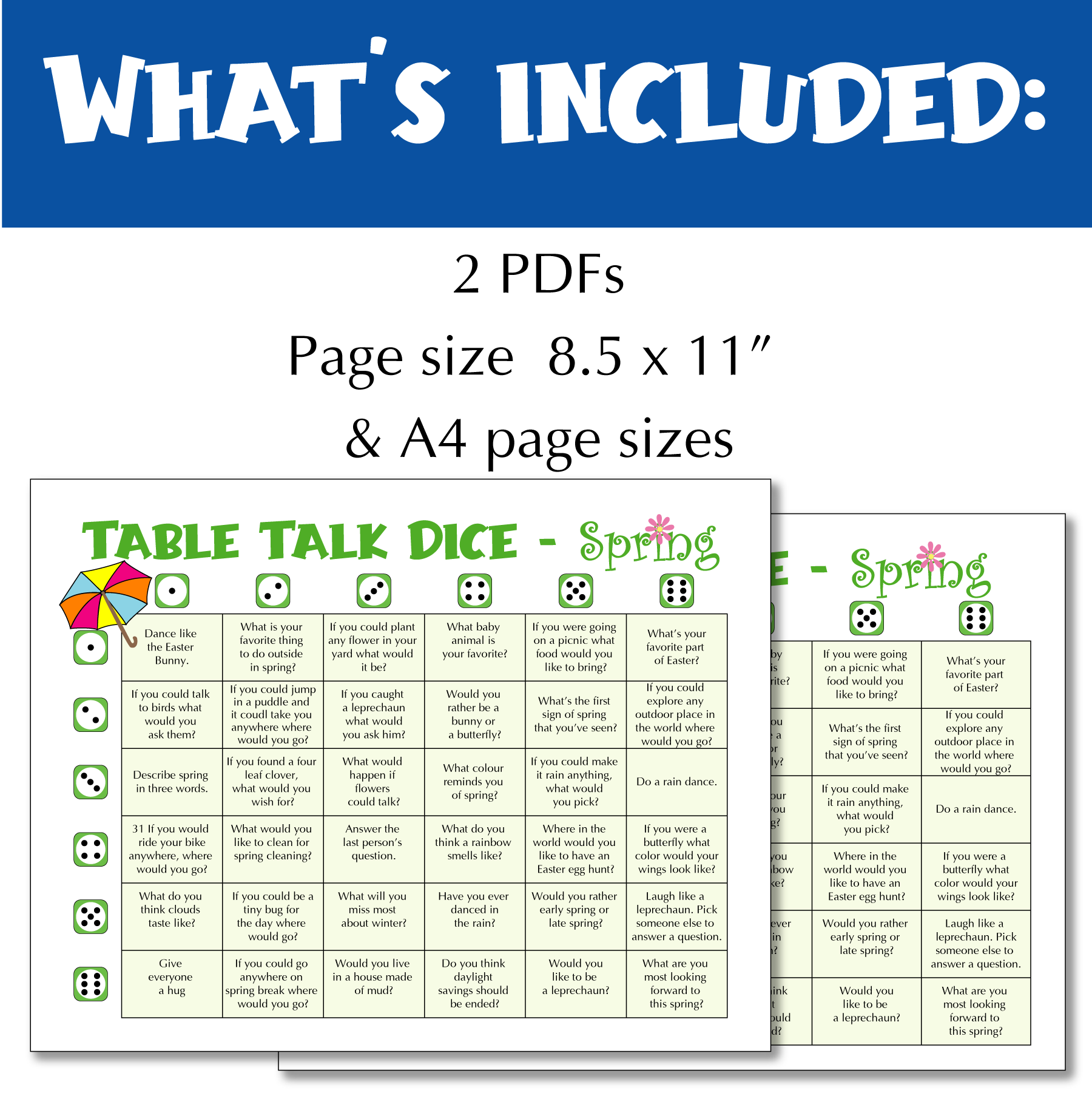 Open the door to meaningful conversation while having fun with this Spring themed Table Talk Dice game!